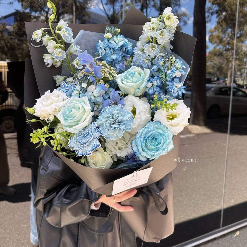 Reach for the sky with our Blue Skyla bouquet—a dreamy blend of dyeing blooms that'll brighten any room and lift any mood. This fresh flower arrangement captures the serene beauty of a cloudless day, featuring a carefully curated mix of blue and complementary white flowers that dance together in perfect harmony. Whether you're celebrating a special someone or treating yourself, Blue Skyla delivers that "wow" moment every time. Each stem is hand-selected and arranged with love, arriving fresh and ready to steal the show. Let this cheerful bunch remind you that every day deserves a splash of sky-inspired colour.